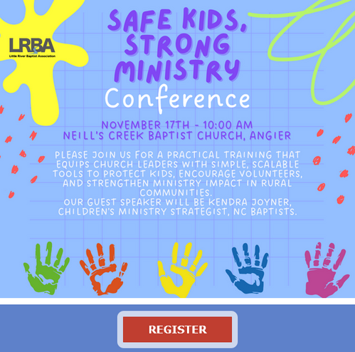 This will be led by Kendra Joyner, Children’s Ministry Strategist with NC Baptist. (PLEASE REGISTER HERE).